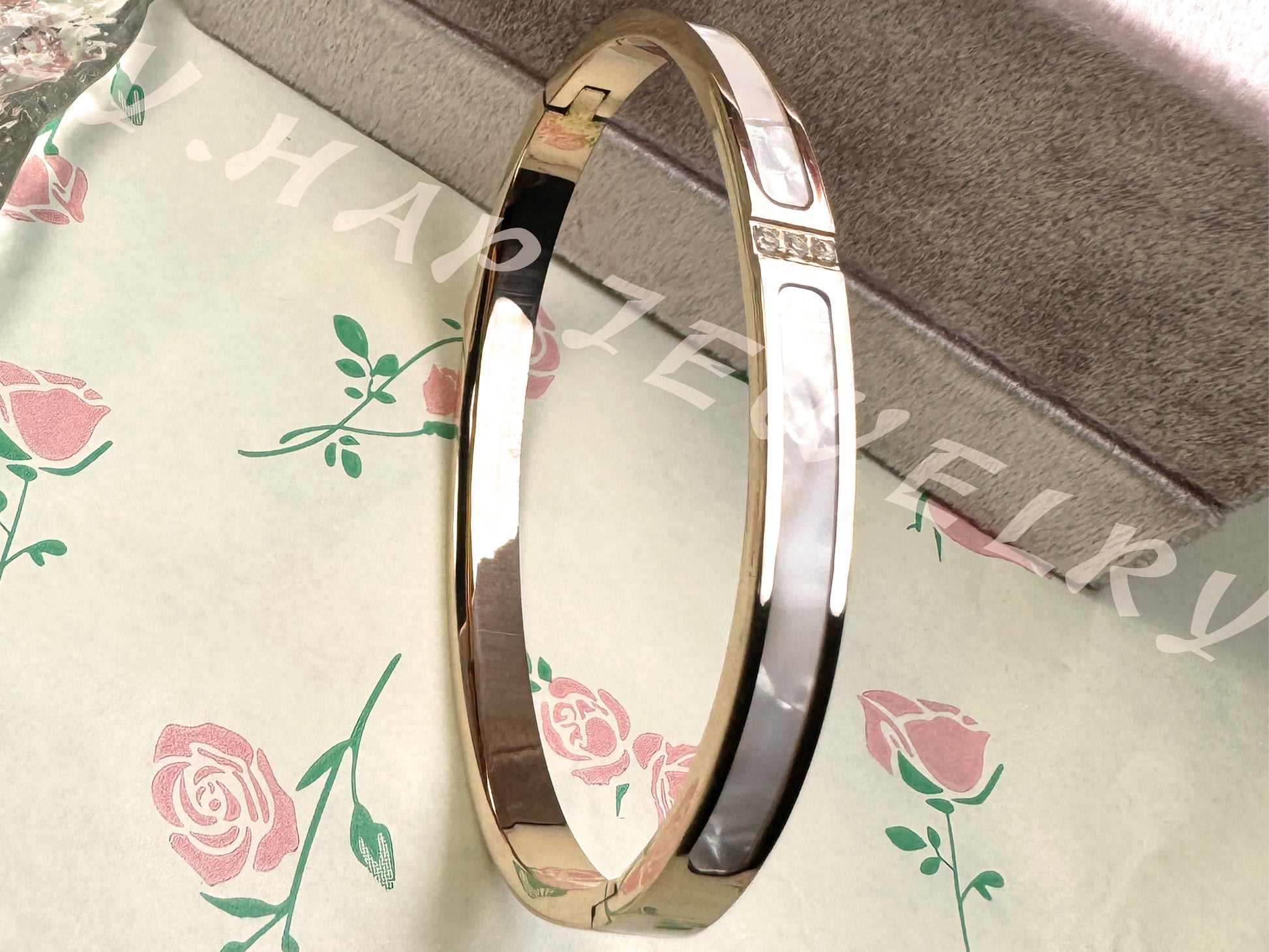 White Shell Three-row Diamond Rose Gold Metal Bracelet_JEWELRY